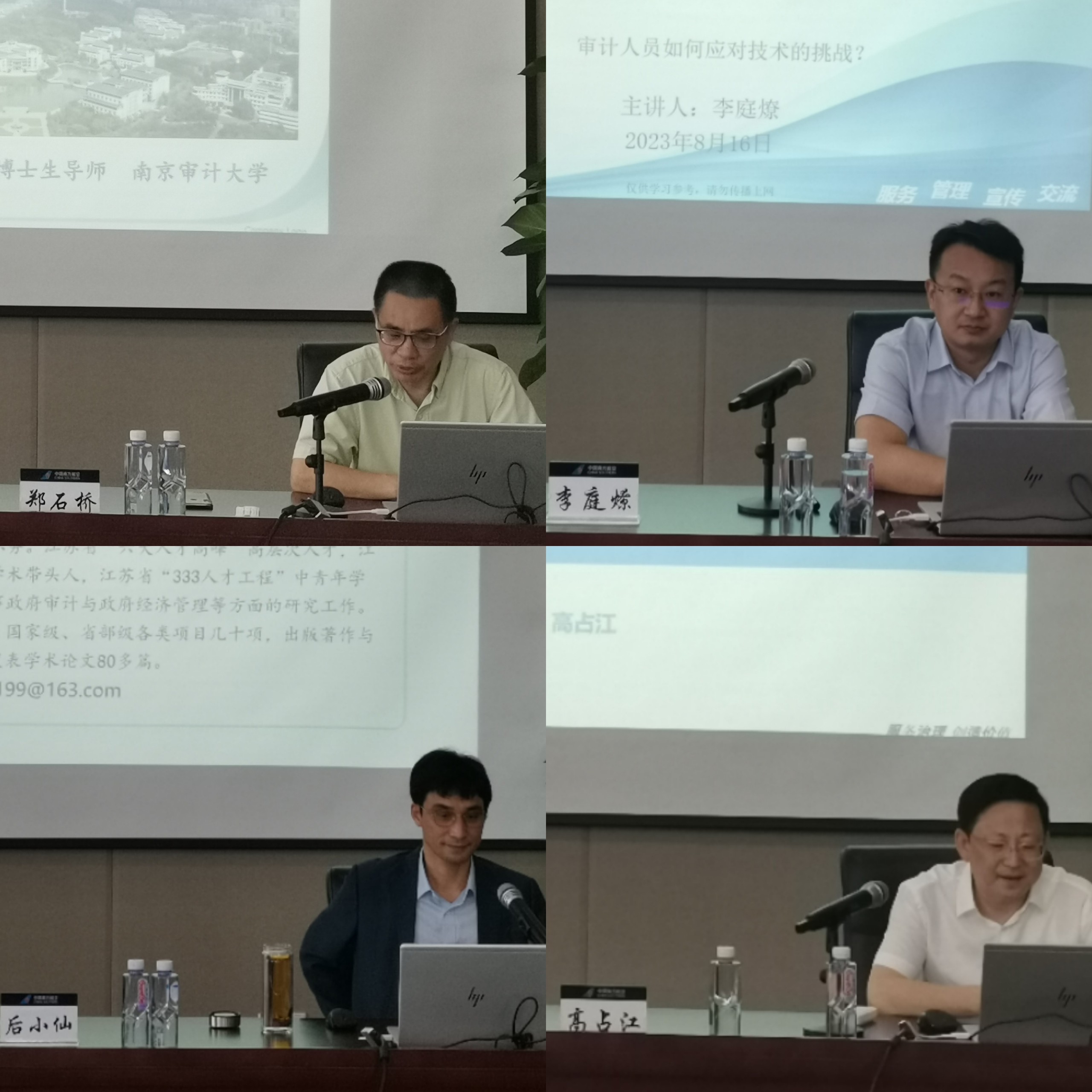 我会高度重视南航集团本次培训委托,按照培训计划需求,认真落实优质师资,通过努力协调,邀请到了南京审计大学郑石桥、李庭燎和后小仙三位教授,分别讲授《新时期内部审计工作重点和发现趋势:以研究型审计实现内部审计高质量发展》《信息技术和大数据审计》和《重大政策措施落实跟踪审计》,另外,还有幸邀请到浙江省审计厅一级巡视员高占江前来讲授《经济责任审计:理论与实务若干问题》。众位老师学识渊博,研究精深,他们以旁征博引的丰富内容,深入浅出的精心讲解,耐心细致与学员交流互动,分享了大量成功经验做法和独到研究见解,给学员们带来了精彩纷呈的知识盛宴。