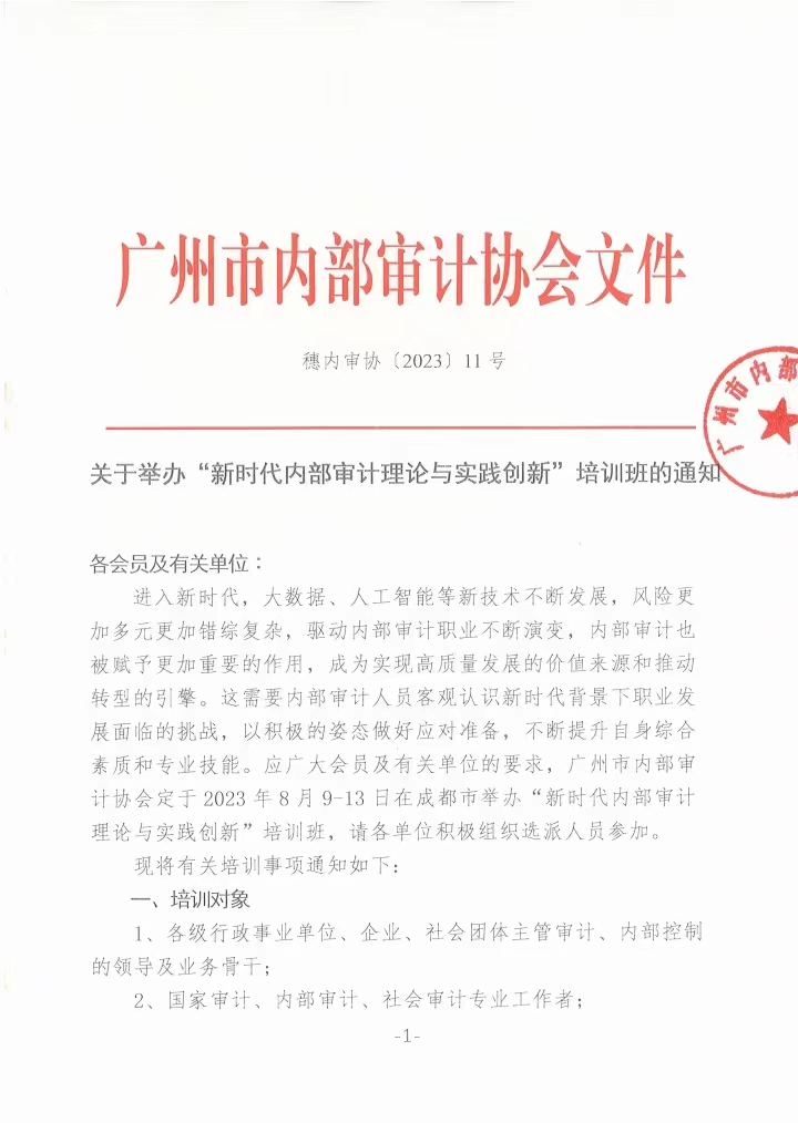 关于举办“新时代内部审计理论与实践创新”培训班的通知-穗内审协〔2023〕11号.pdf