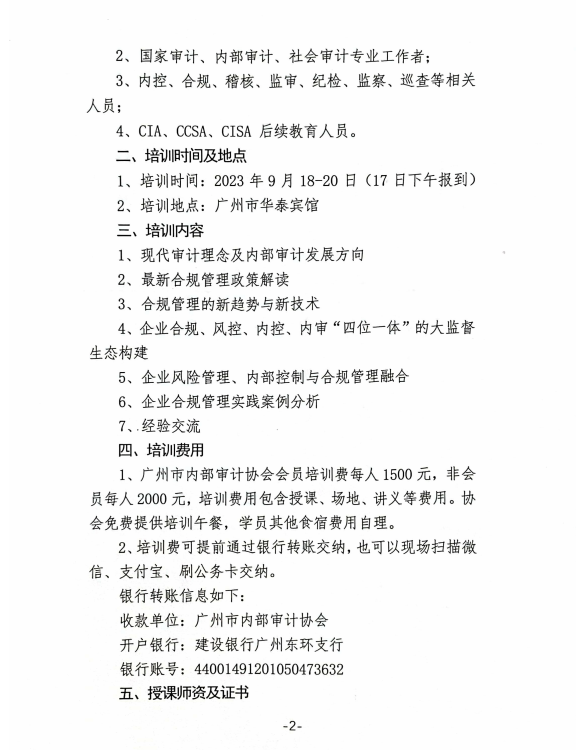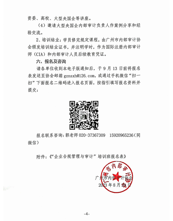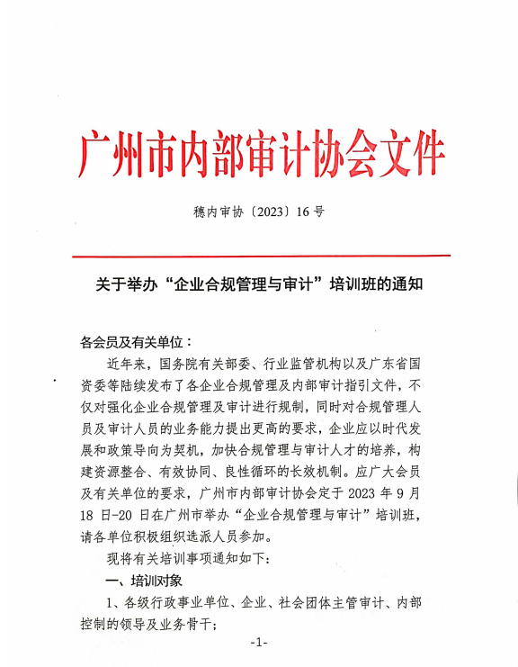 附件1:关于举办“企业合规管理与审计”培训班的通知-穗内审协〔2023〕16号 .pdf