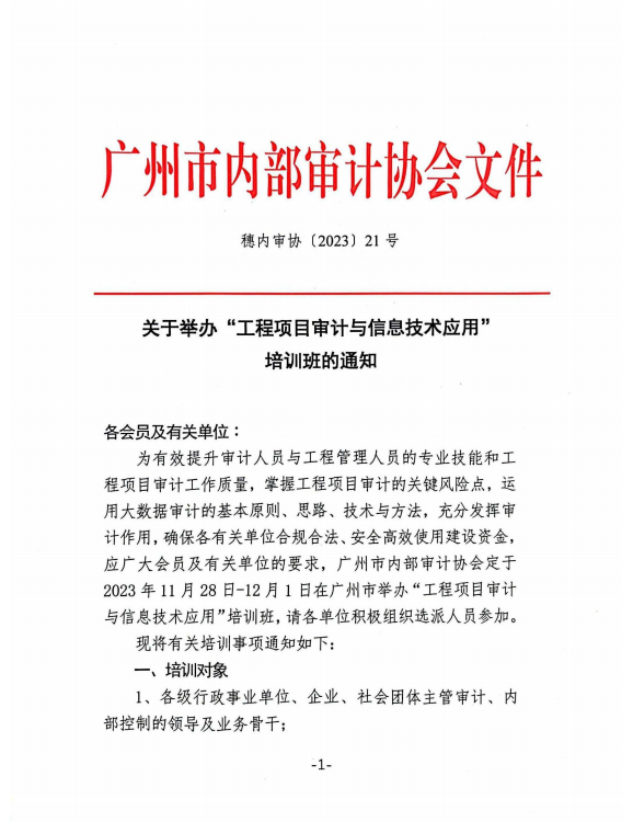 附件:穗内审协〔2023〕21号 关于举办“工程项目审计与信息技术应用”培训班的通知.pdf
