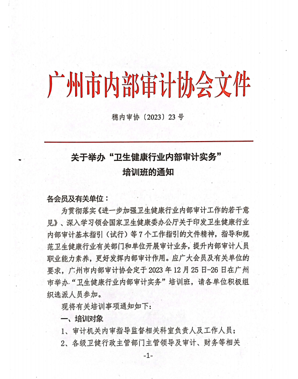 穗内审协〔2023〕23号 关于举办“卫生健康行业内部审计实务”培训班的通知.pdf