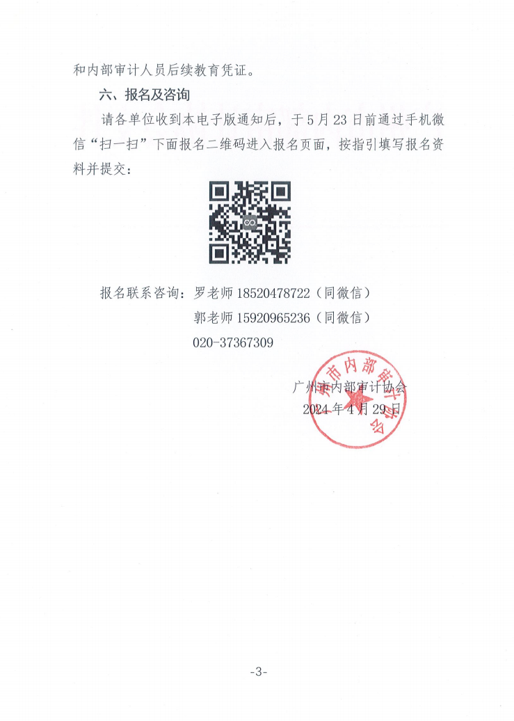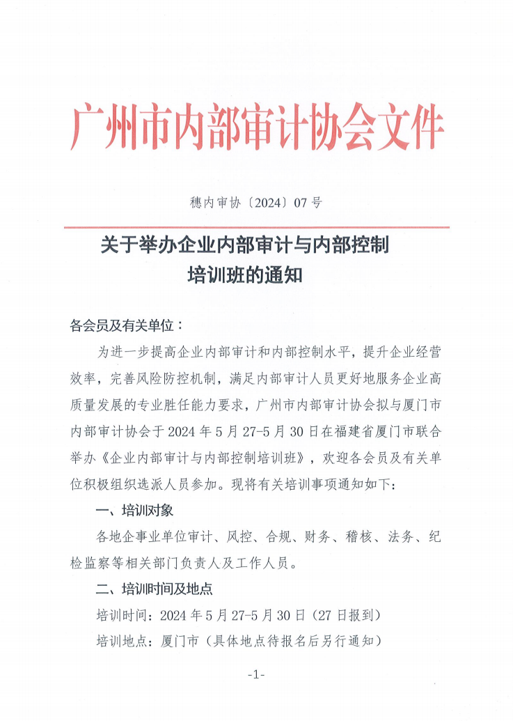穗内审协〔2024〕7号 关于举办企业内部审计与内部控制培训班的通知.pdf