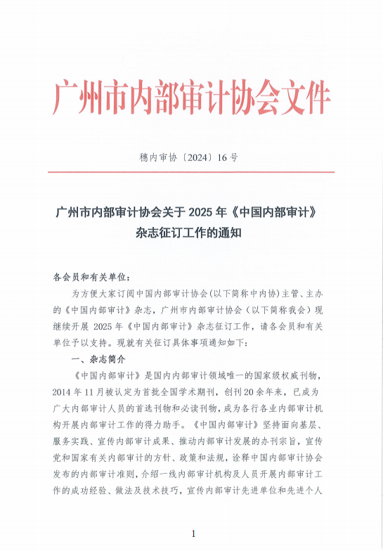 穗内审协〔2024〕16号 关于2025年《中国内部审计》杂志征订工作的通知.pdf