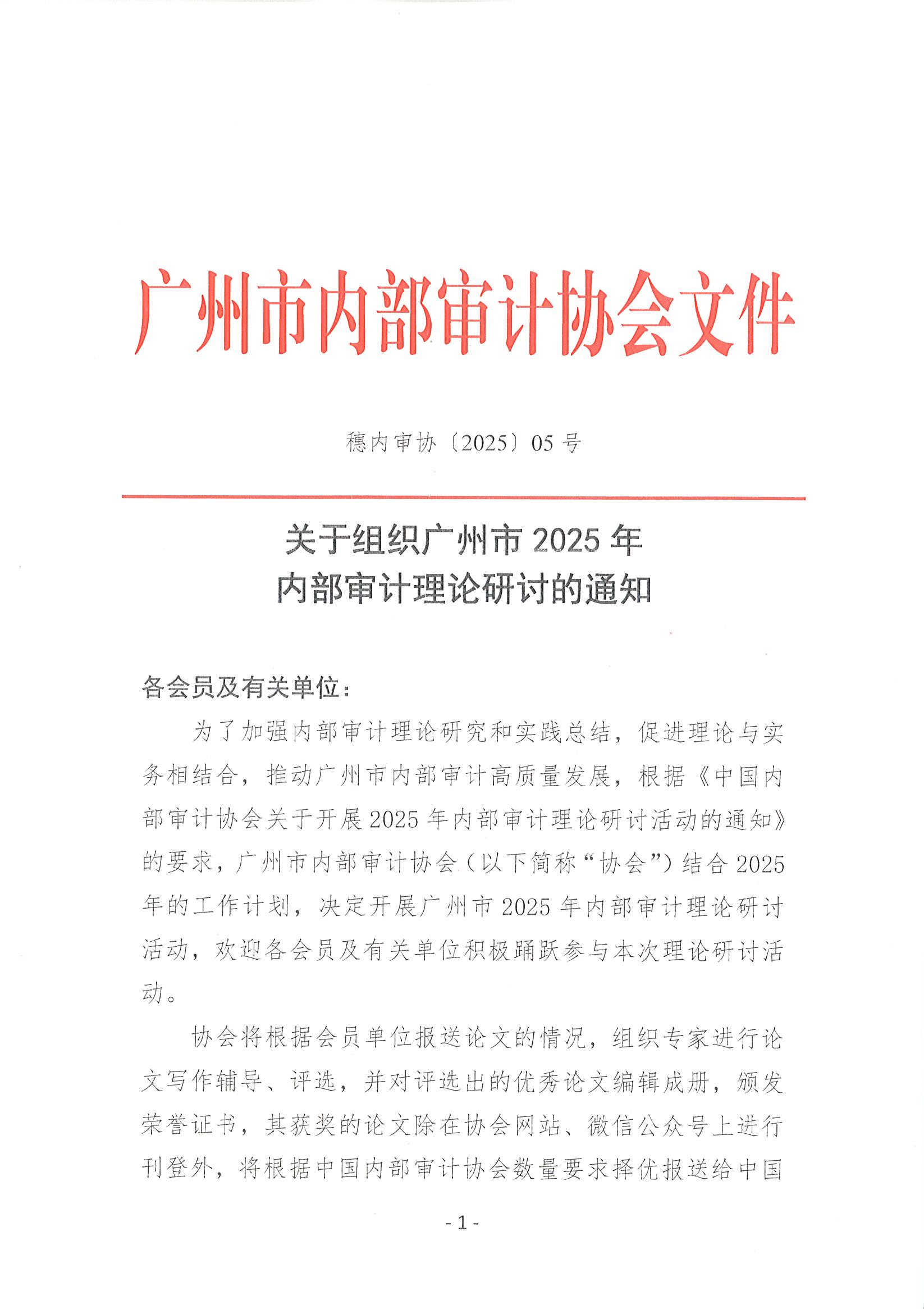穗内审协〔2025〕5号关于组织广州市2025年内部审计理论研讨的通知.pdf