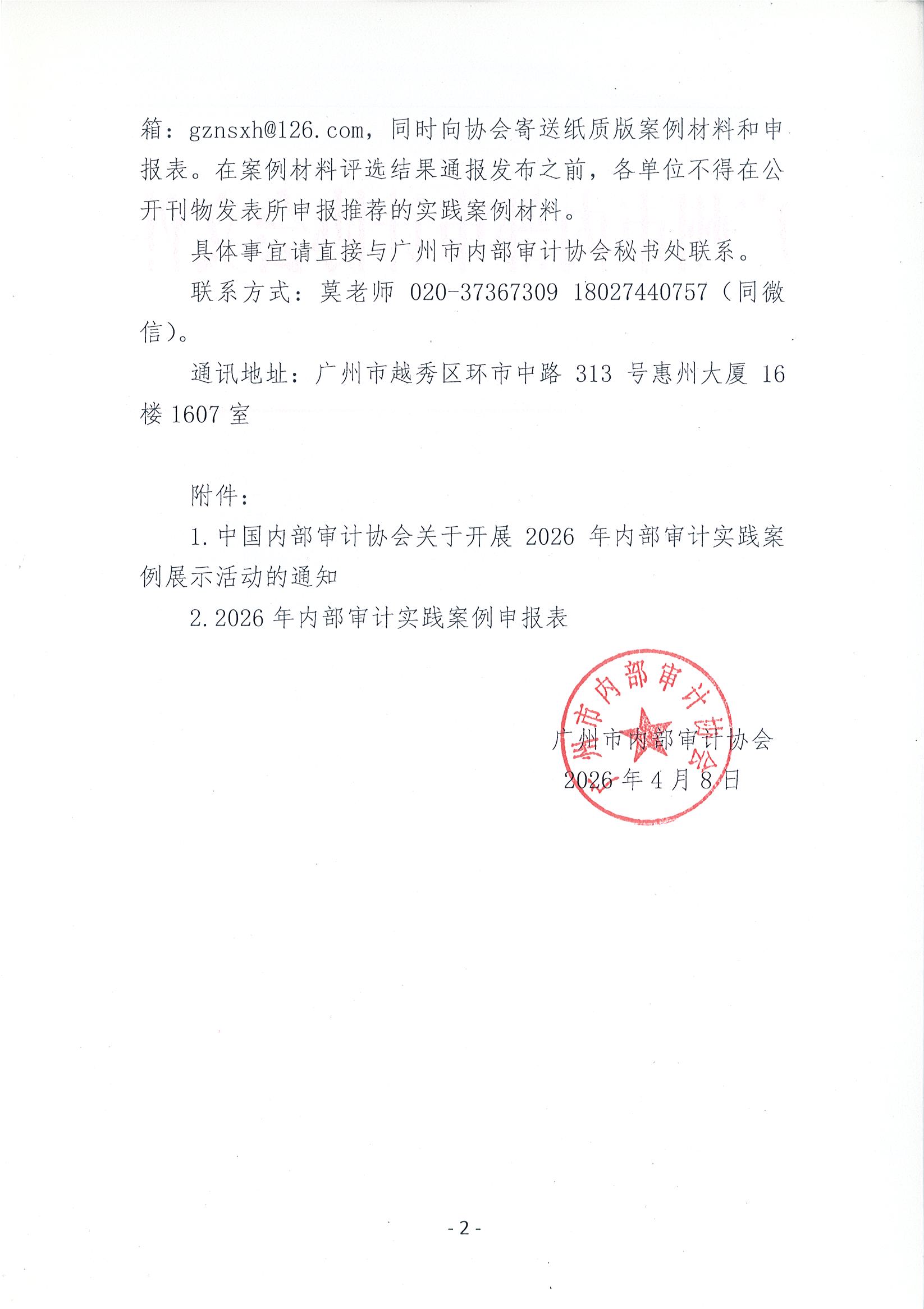本文PDF:穗内审协〔2026〕3号关于组织2026年内部审计实践案例展示活动的通知.pdf