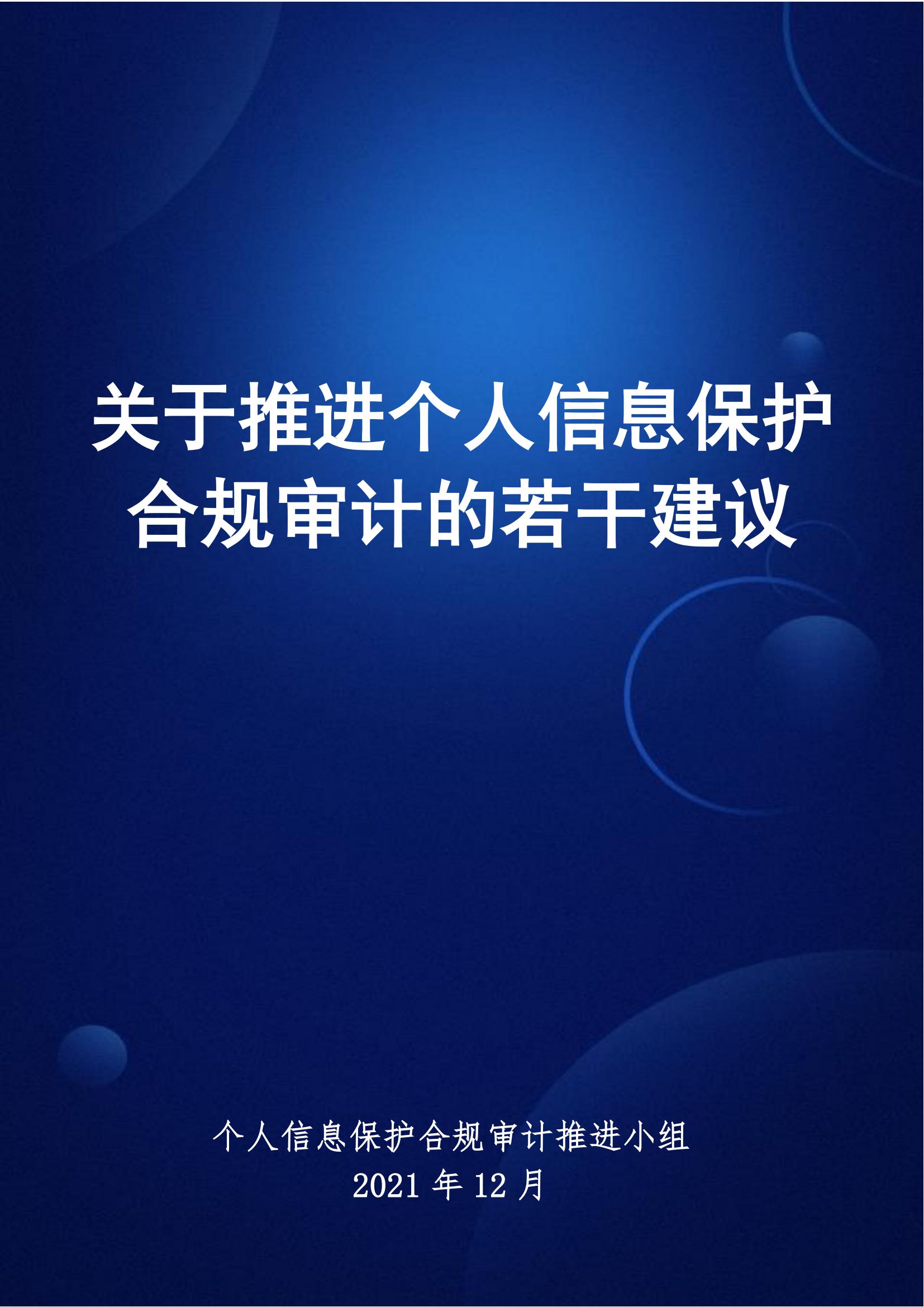 今年11月1日正式实施的《个人信息保护法》提出了个人信息处理活动合规审计要求。为帮助广大审计人员更好地理解和落实此项要求,将此项要求融入单位现有的个人信息保护合规框架中,在中国内部审计协会、中国银行业协会、中国通信标准化协会互联网医疗健康标准推进委员会的指导下,由中国信通院云大所牵头组织,由来自中国移动、中信银行、大家保险、中移信息、字节跳动、美团、易车、联想、贝壳找房、蚂蚁、世辉律所、小米、网商银行的近20位专家共同组建“个人信息保护合规审计推进小组”,编制了题为《关于推进个人信息保护合规审计的若干建议》的研究报告。