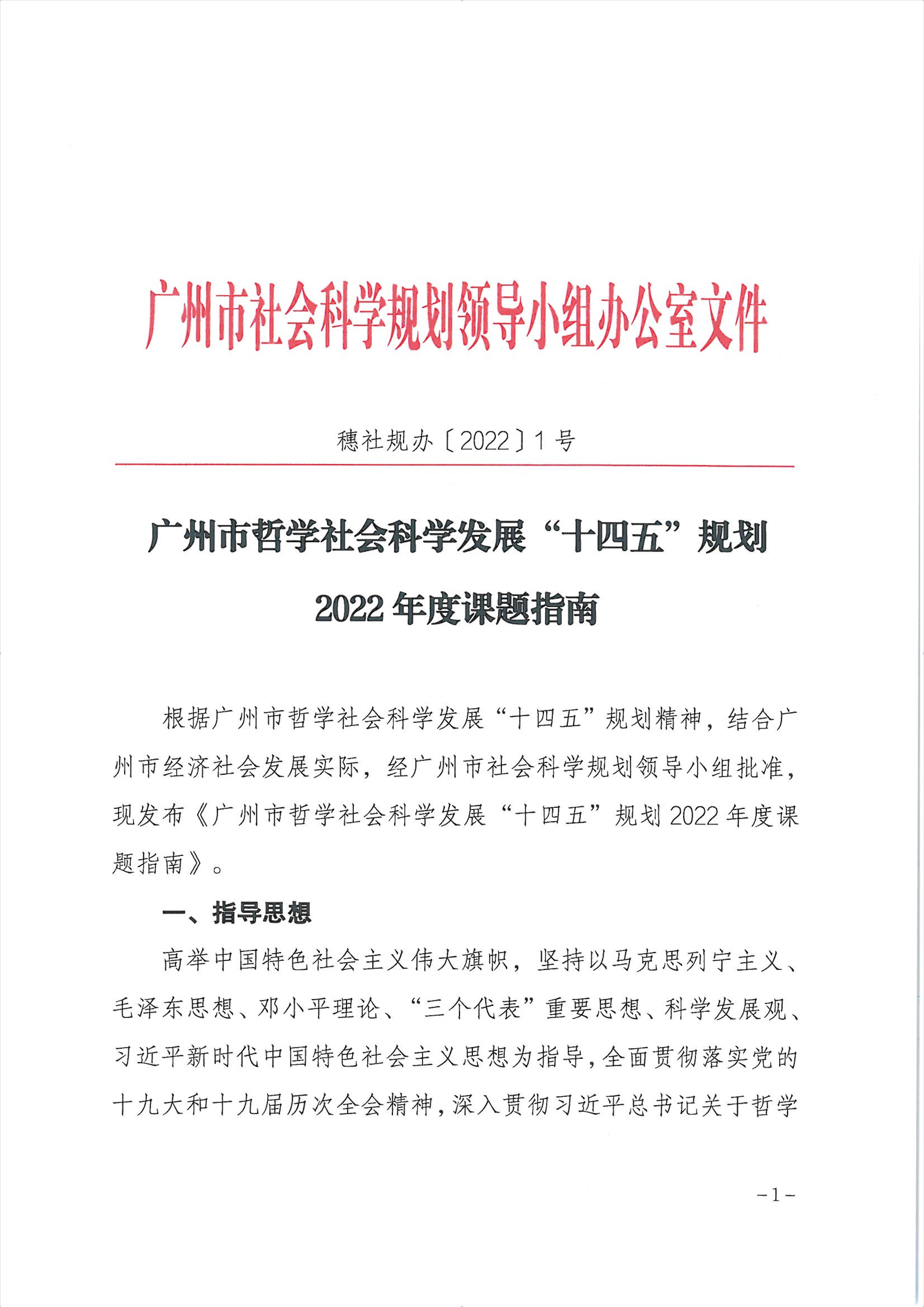 文件下载:穗社规办【2022】1号《广州市哲学社会科学发展“十四五”规划2022年度课题指南》.pdf