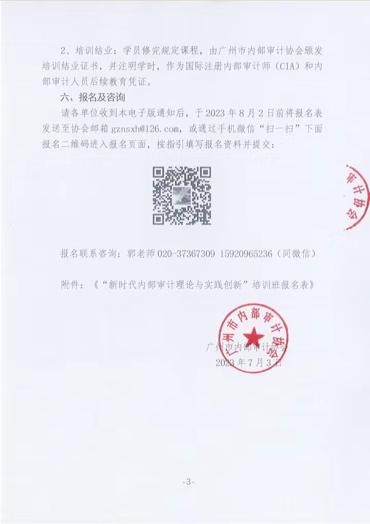 关于举办“新时代内部审计理论与实践创新”培训班的通知-穗内审协〔2023〕11号.pdf