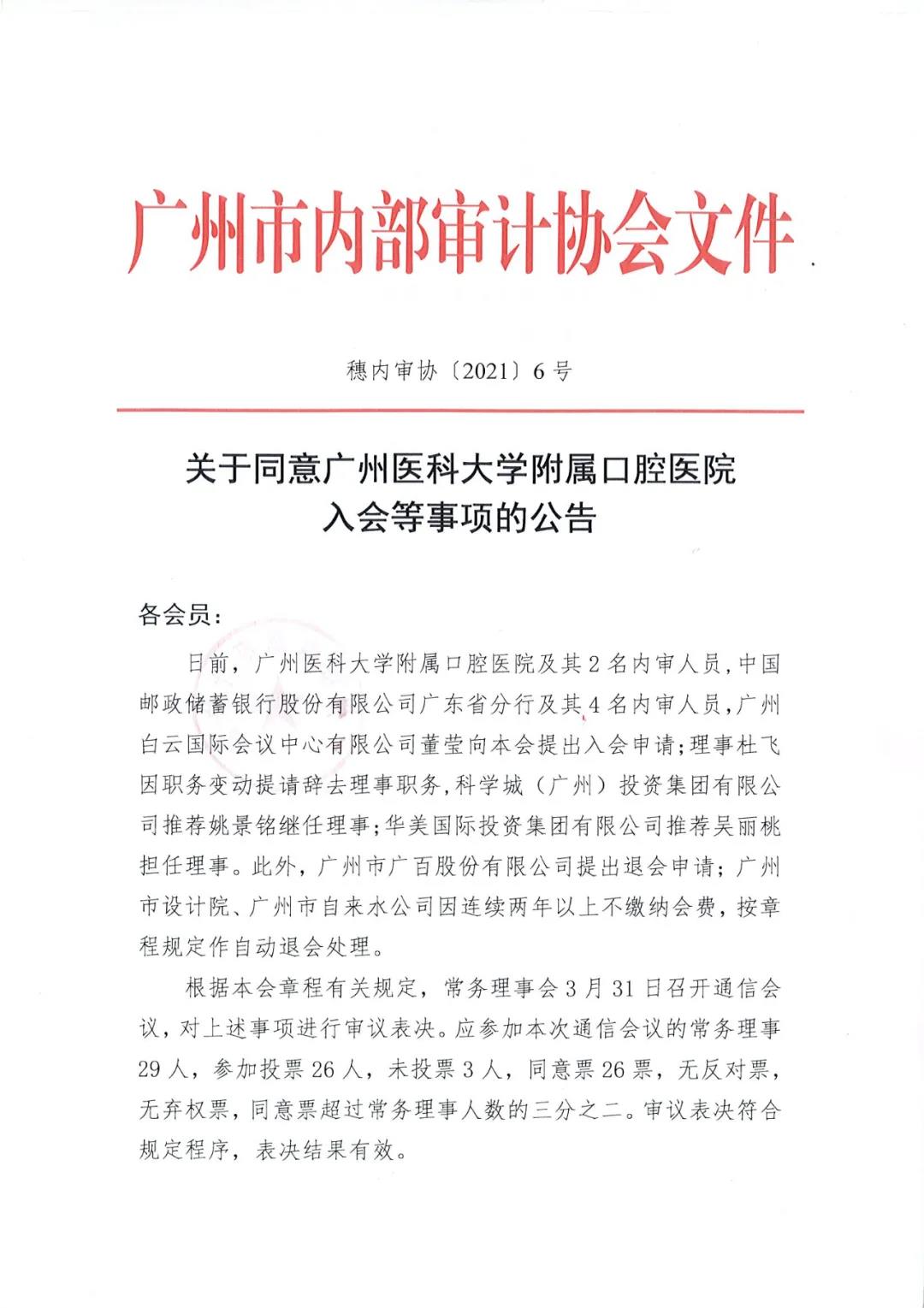 关于同意广州医科大学附属口腔医院入会等事项的公告