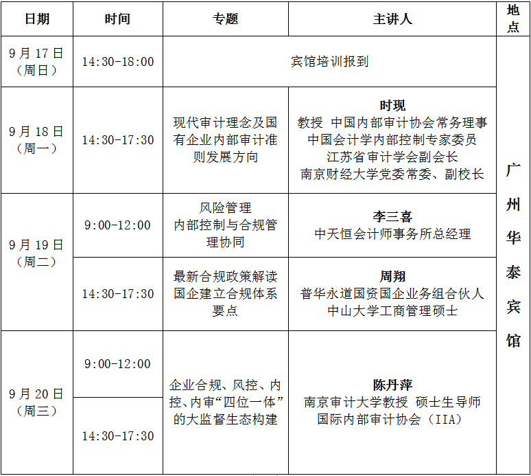 1、请所有学员(或派代表)于9月17日下午到广州华泰宾馆大堂培训报到处完成报到和现场缴费,领取培训资料;