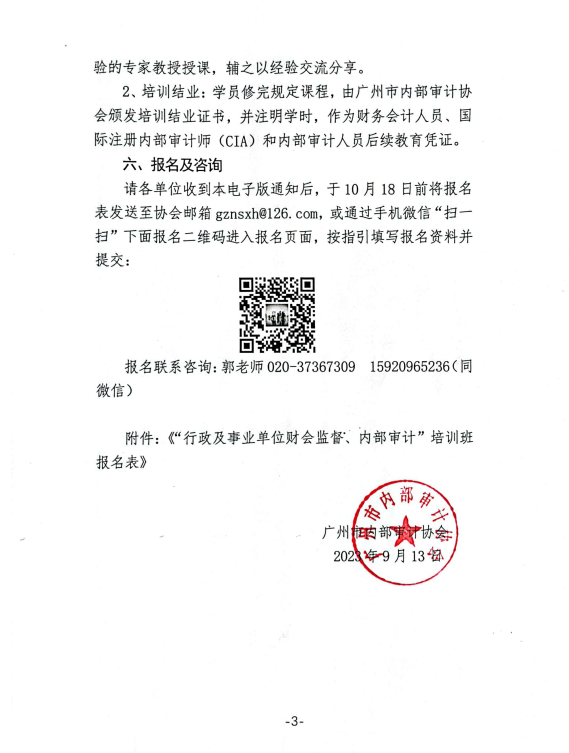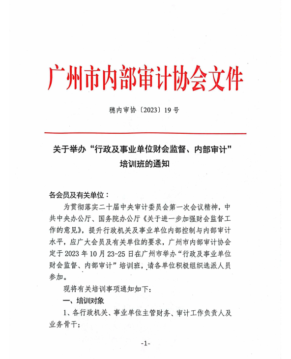 穗内审协〔2023〕19号 关于举办“行政及事业单位财会监督、内部审计”培训班的通知.pdf