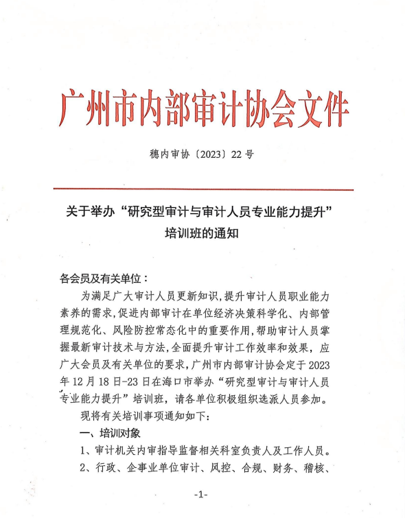 穗内审协〔2023〕22号 关于举办“研究型审计与审计人员专业能力提升”培训班的通知.pdf