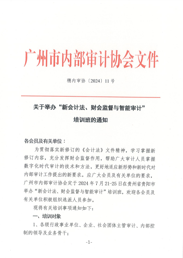 穗内审协〔2024〕11号 穗内审协〔2024〕11号 关于举办“新会计法、财会监督与智能审计“培训班的通知.pdf