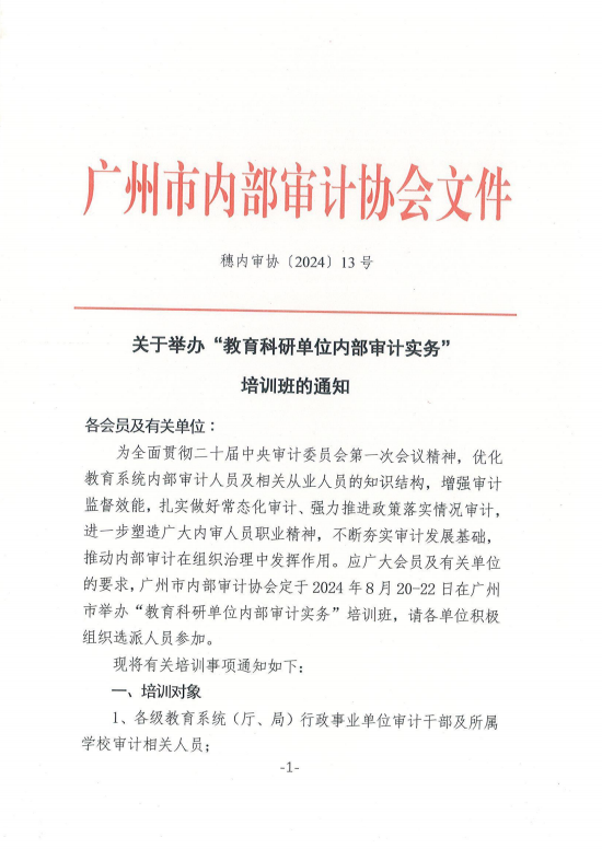 穗内审协〔2024〕13号 关于举办“教育科研单位内部审计实务”培训班的通知.pdf