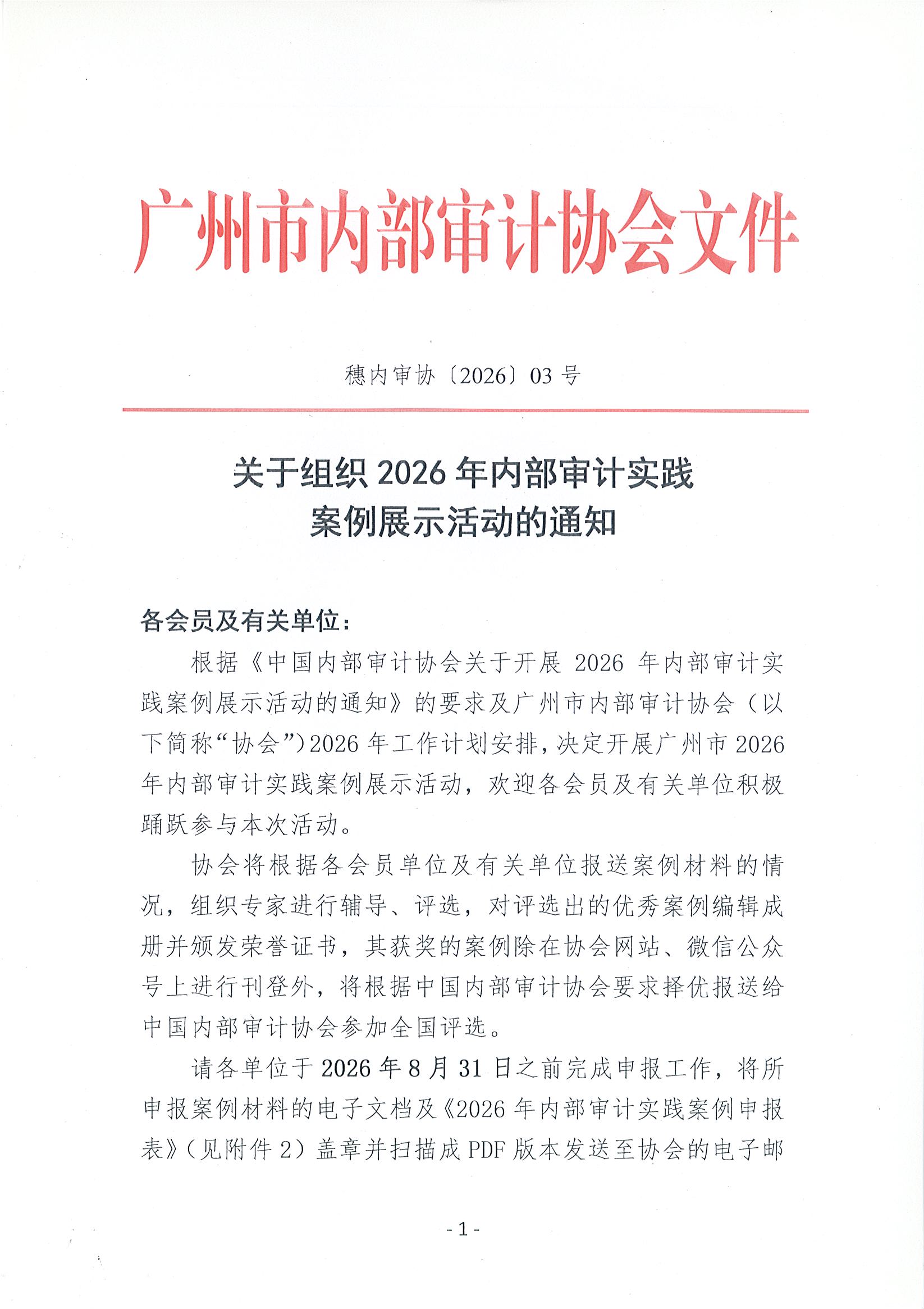 本文PDF:穗内审协〔2026〕3号关于组织2026年内部审计实践案例展示活动的通知.pdf