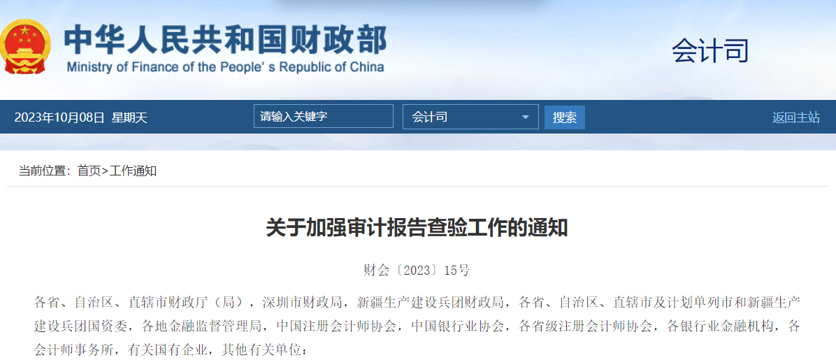 为贯彻落实《中共中央办公厅 国务院办公厅印发<关于进一步加强财会监督工作的意见>的通知》 《国务院办公厅关于进一步规范财务审计秩序 促进注册会计师行业健康发展的意见》(国办发〔2021〕30号) 要求,加强注册会计师行业信息化监管,强化审计报告查验,现将有关事项通知如下: