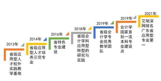 ·2021年,在艾瑞深校友会网专业分类列示,会计学、财务管理、审计学三个专业均位列广东省应用型专业第一名,其中会计学和财务管理两个专业为中国顶尖应用型专业,审计学为中国高水平应用型专业。